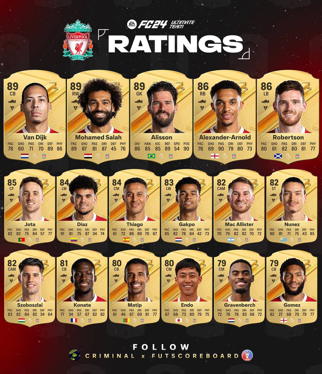 В сети появился возможный рейтинг игроков «Ливерпуля» в FC 24.