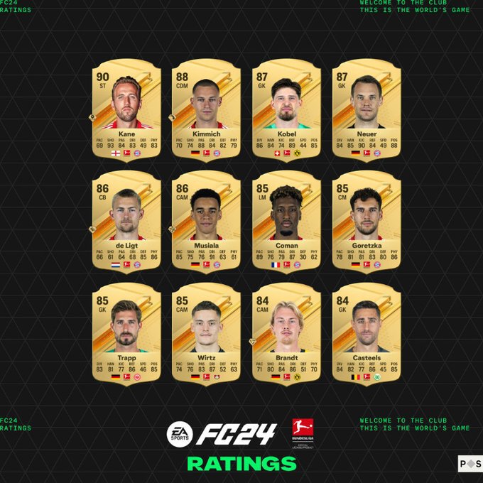 Кейн (90), Киммих (88), Кобель (87) и Нойер (87) – лучшие игроки Бундеслиги в FC 24