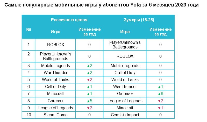 Самыми популярными мобильными играми среди россиян являются Roblox, PUBG: Battlegrounds и Mobile Legends.