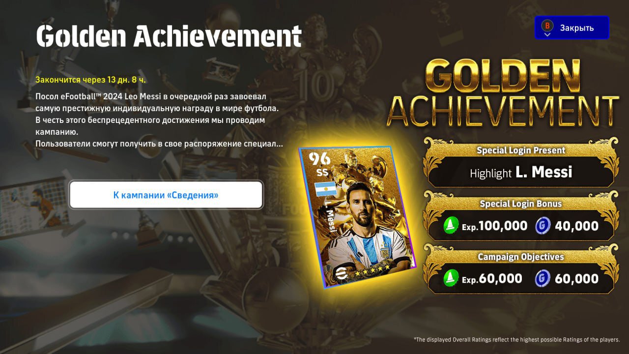 Карточку Месси с рейтингом 85 бесплатно дарят в eFootball 2024 в честь выигрыша «Золотого мяча»