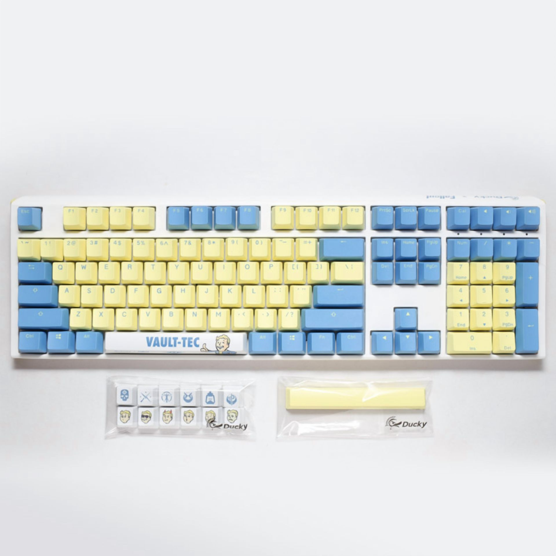 Клавиатура Ducky x Fallout Vault-Tec One 3 Limited Edition выполнена в фирменных цветах Vault-Tec и основана на Ducky One III. В комплект входит коврик для мыши XXL с дизайном Vault-Tec, дополняющий общую тематику Fallout.