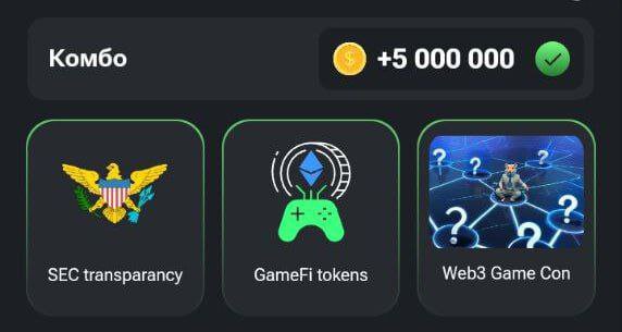 Каждые несколько дней в разделе Mine появляется новое комбо. Это секретная комбинация карт, которую нужно собрать (купить все три карточки) в Hamster Kombat для получения бонуса в 5 млн монет.