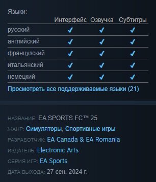 Информация об этом появилась в Steam. 17 июля EA Sports открыла предзаказы на новую часть футсима FC 25 и представила трейлер игры.