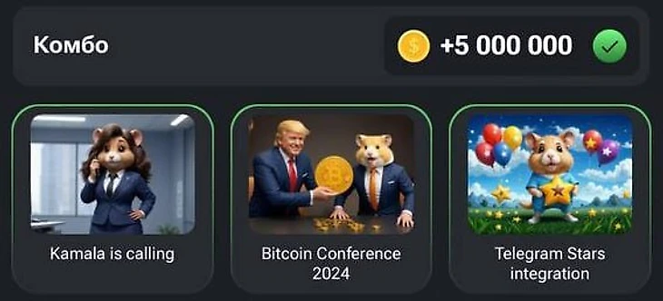 Каждые несколько дней в разделе Mine появляется новое комбо. Это секретная комбинация карт, которую нужно собрать (купить все три карточки) в Hamster Kombat для получения бонуса в 5 млн монет.