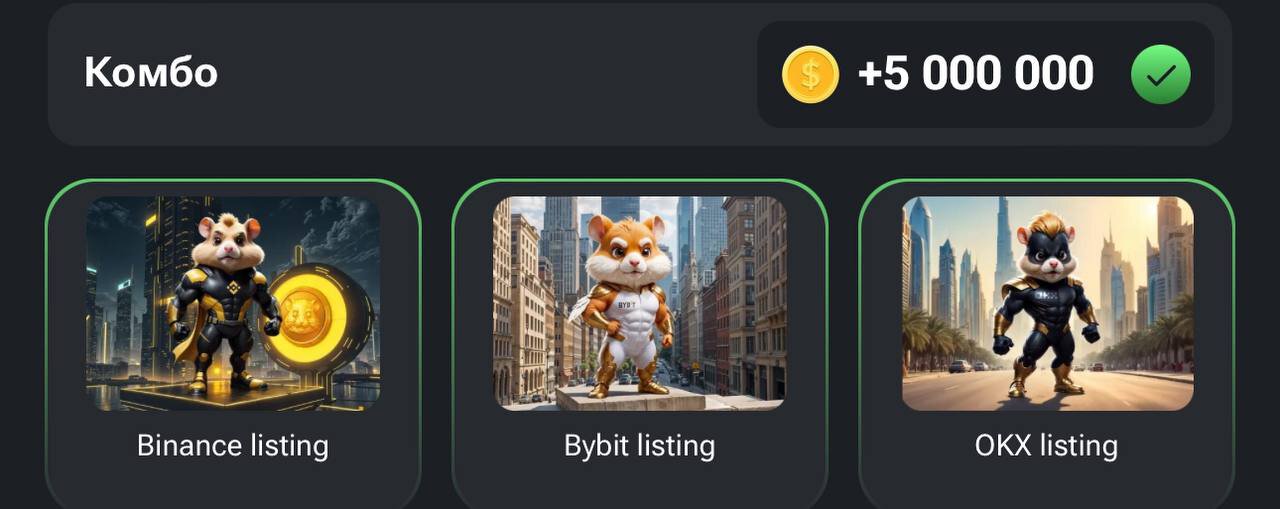 Каждые несколько дней в разделе Mine появляется новое комбо. Это секретная комбинация карт, которую нужно собрать (купить все три карточки) в Hamster Kombat для получения бонуса в 5 млн монет.