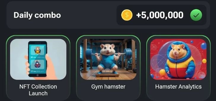 Каждые несколько дней в разделе Mine появляется новое комбо. Это секретная комбинация карт, которую нужно собрать (купить все три карточки) в Hamster Kombat для получения бонуса в 5 млн монет.