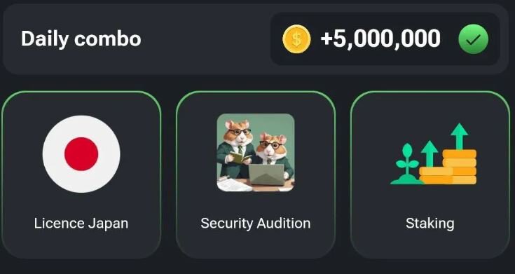 Каждые несколько дней в разделе Mine появляется новое комбо. Это секретная комбинация карт, которую нужно собрать (купить все три карточки) в Hamster Kombat для получения бонуса в 5 млн монет.