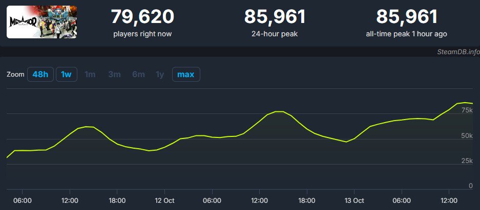 Пиковый онлайн Metaphor: ReFantazio превысил 85 тысяч пользователей после выхода. Сейчас в игре находятся 79 тысяч человек.