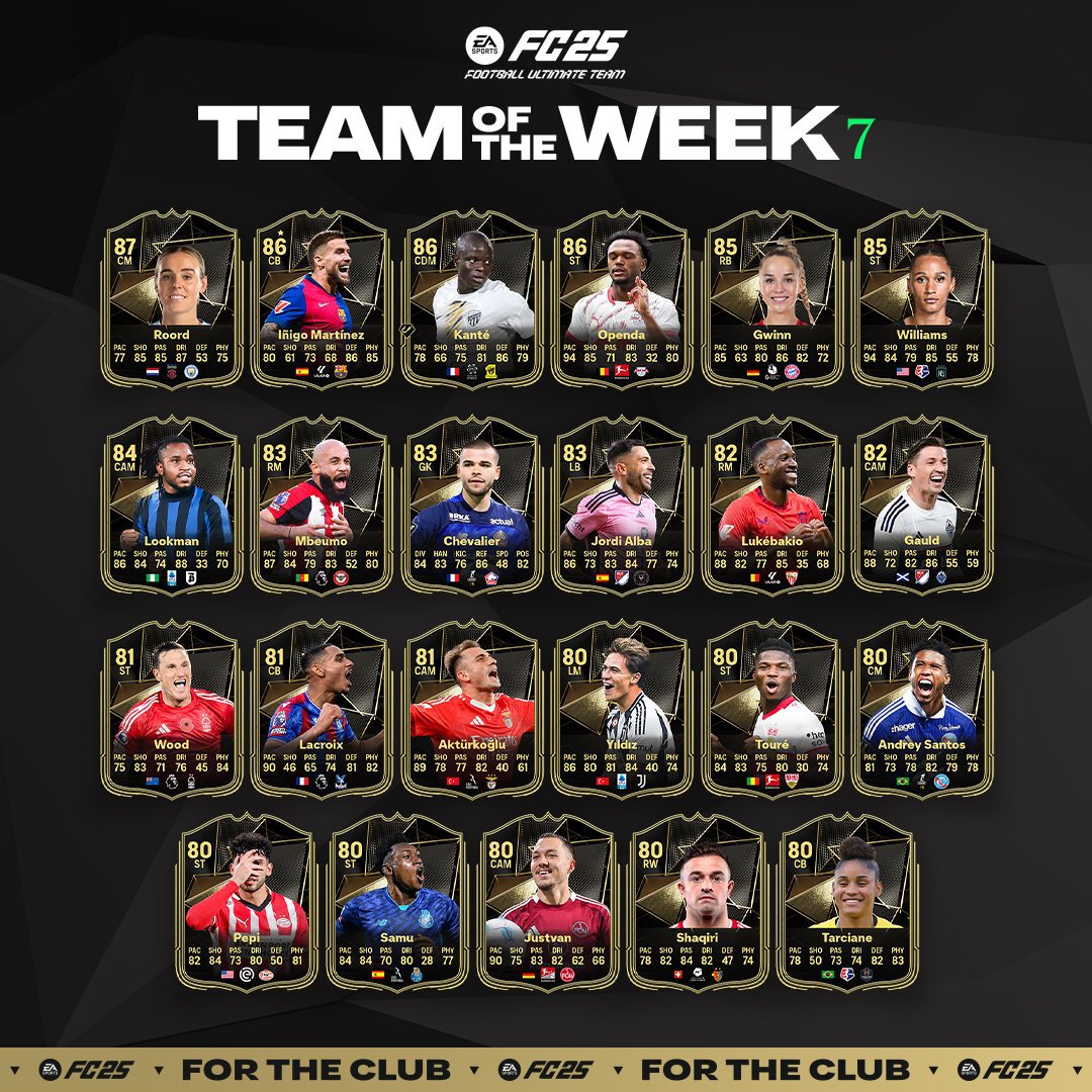 Лучшей футболисткой недели стала Джилл Рорд из «Манчестер Сити» с рейтингом 87. Рейтинг 86 получили Нголо Канте, Иньиго Мартинес и Лои Опенда.