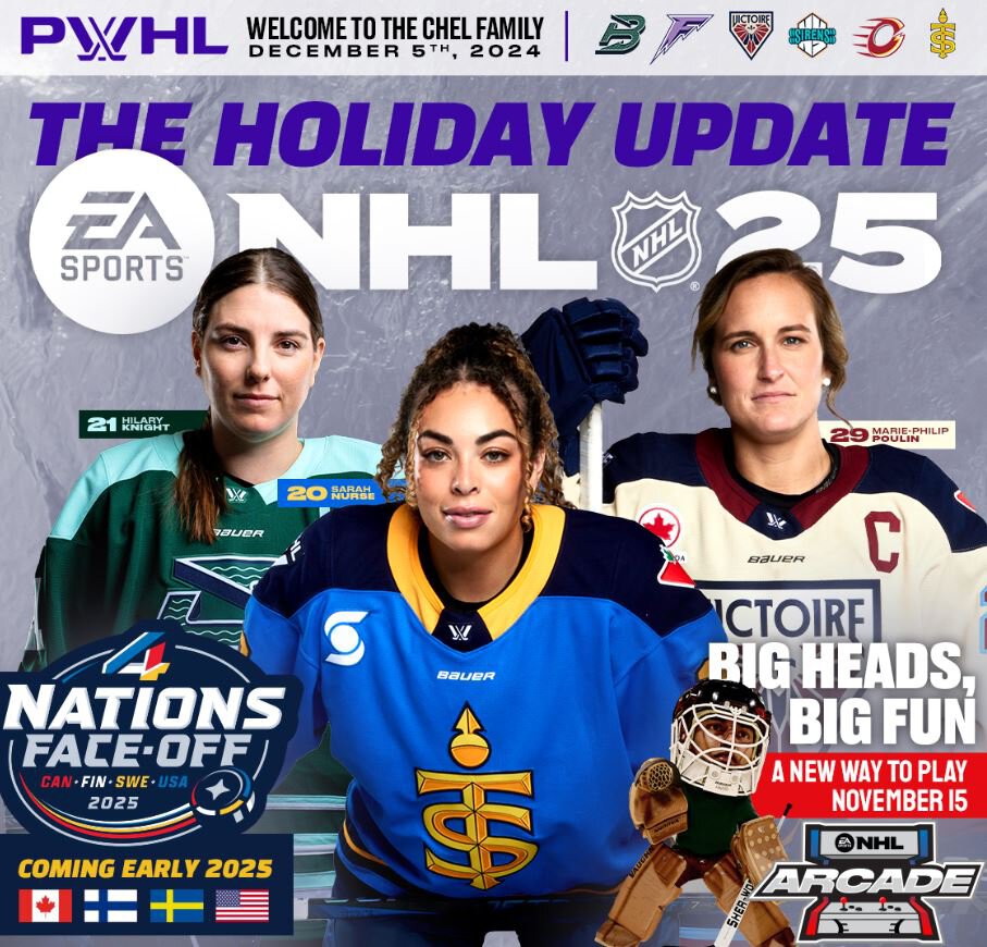 «Мы очень рады представить PWHL в NHL 25 в рамках масштабного праздничного обновления, которое предоставит игрокам совершенно новые возможности для игры, начиная от неистовой энергии NHL Arcade, заканчивая запуском 4 Nations Face-Off в Новом году.