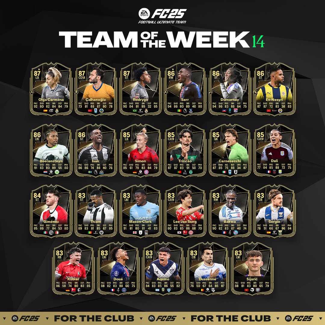 Лидером состава стали полузащитник «Интера» Хакан Чалханоглу, Родриго из «Реала» и испанская футболистка Ольга Кармона. Все три игрока получили рейтинг 87.