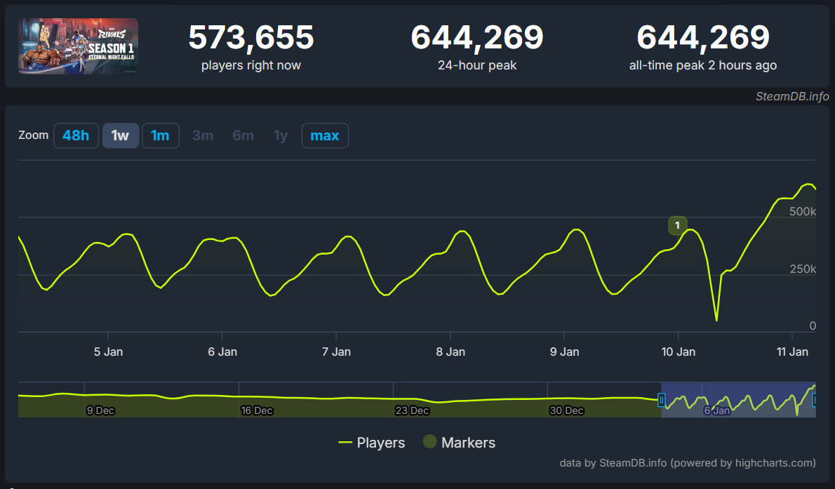 Marvel Rivals обновила рекорд по онлайну после старта первого сезона – 644 тысячи человек в Steam