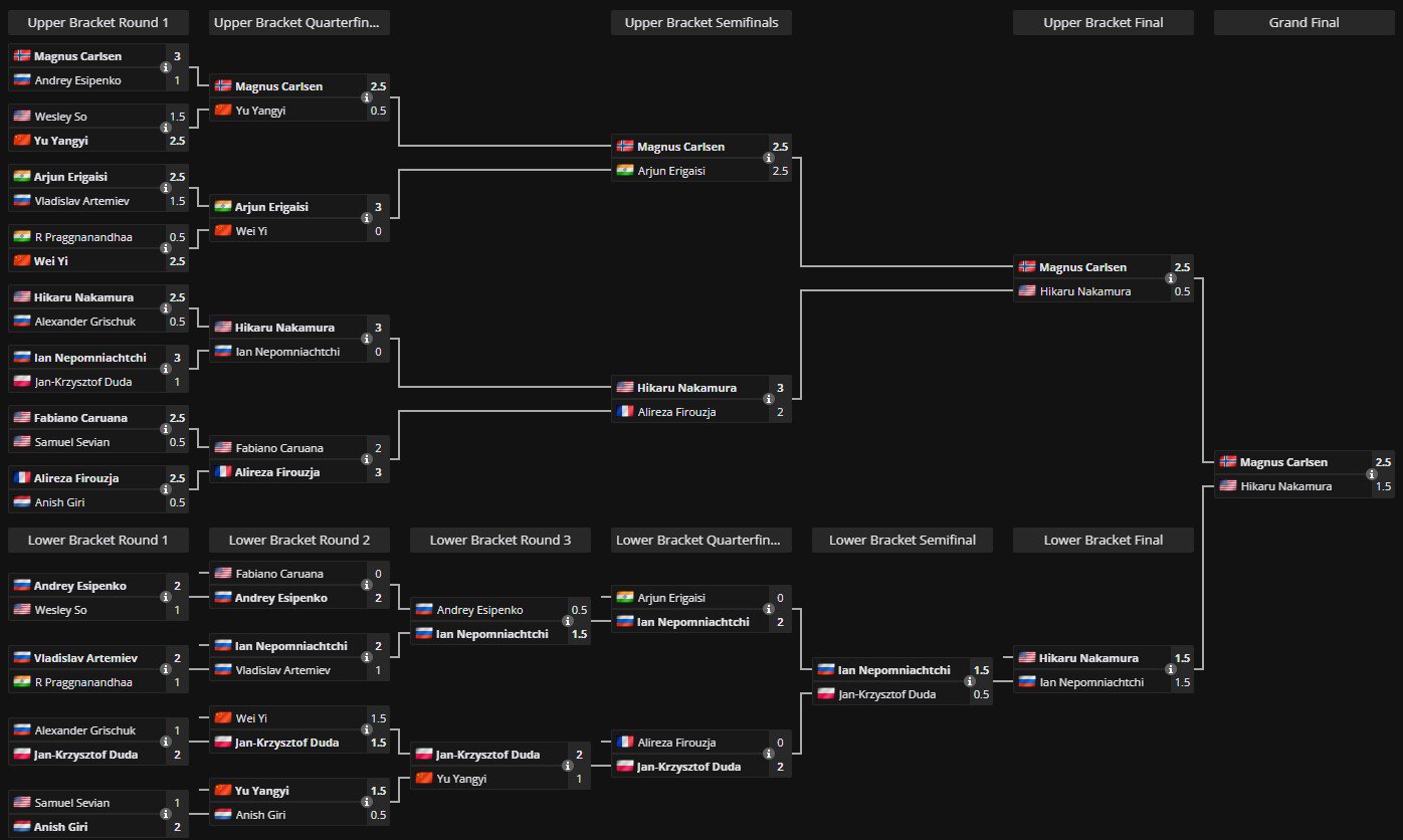 19:15 Карлсен 2.5 – 2.5 Эригайси / матчи верхней сетки