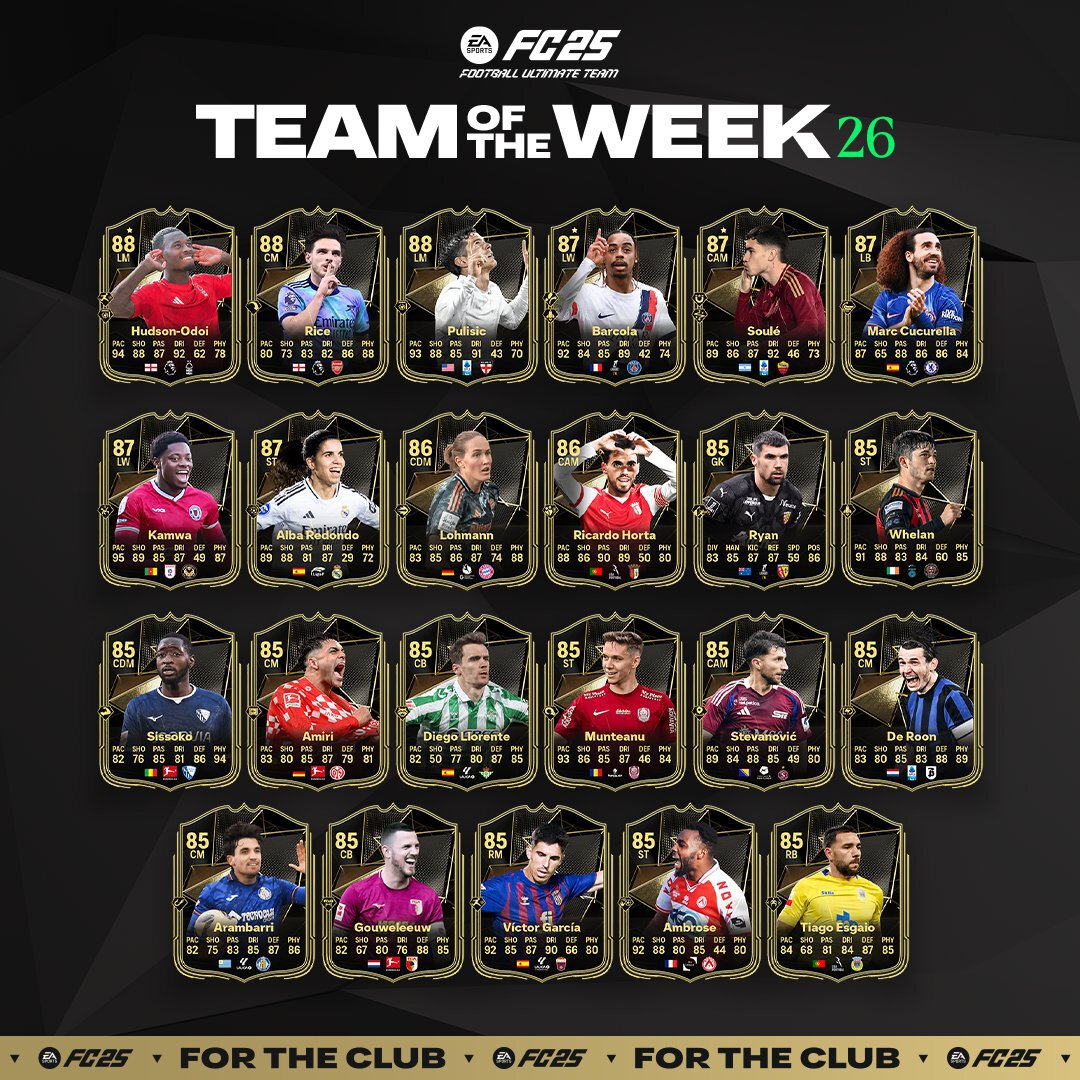 Хадсон-Одои (88), Райс (88) и Пулишич (88) вошли в команду недели FC 25