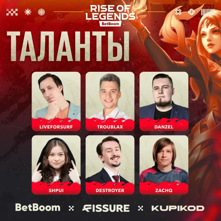 Список талантов русскоязычной студии BetBoom Rise of Legends по MLBB от FISSURE