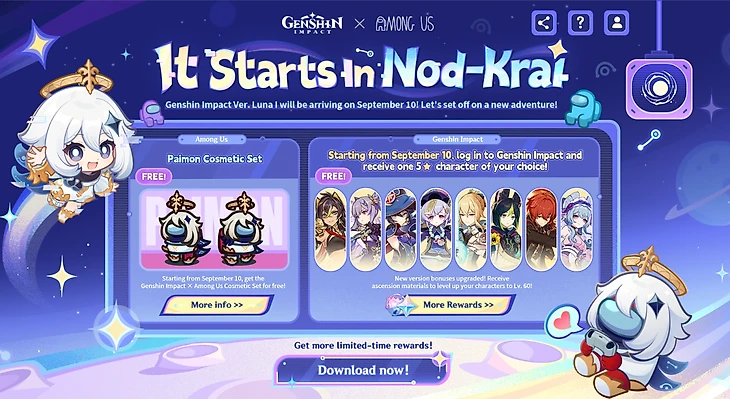 Стартовала коллаборация Among Us и Genshin Impact с бесплатными скинами и предметами