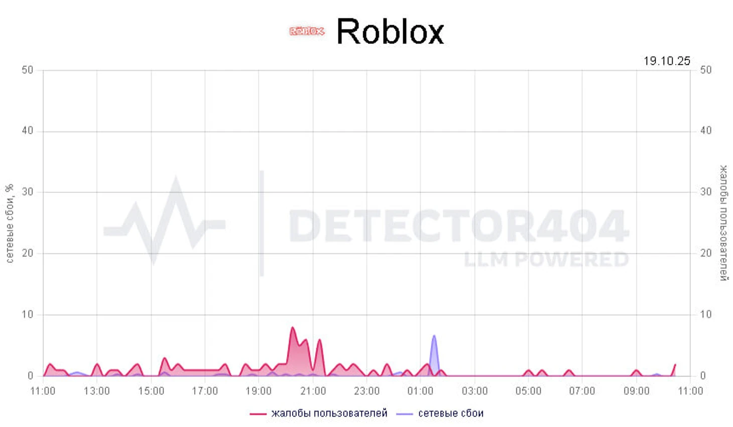 Согласно Downdetector, на сбой в Roblox сегодня жалуются жители Санкт-Петербурга и Москвы. Всего за сутки на проблемы с игрой пожаловались 85 раз.