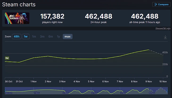 Пиковый онлайн ARC Raiders в Steam превысил 462 тысячи пользователей