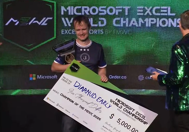 Microsoft Excel World Championship 2025 прошел в Лас-Вегасе с 1 по 3 декабря. Призовой фонд турнира составил 61,5 тысячи долларов.