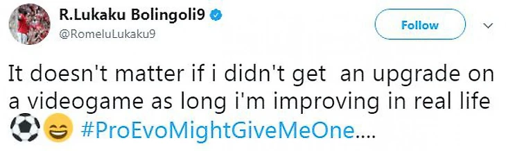Бойтесь разработчики! На охоту выходит Лукаку, который так же недоволен своим рейтингом в FIFA. EA Sports сделали очень странную вещь. Некоторым игрокам из бразильских, корейских и других лиг, о существовании которых мы даже не знаем, разработчики поднимают рейтинг на 5-8 единиц, а футболистам, которые проявили себя в прошлом сезоне делают лишь символический апгрейд. Лукаку не исключение. В прошлом сезоне бельгийский здоровяк наколотил 26 голов, собрал кучу наград, но получил прибавку в две единицы к общему рейтингу. «Не важно, что я не получил апгрейд в видеоигре, пока я совершенствуюсь в реальной жизни – МожетБытьПесДастМнеЕго», – написал игрок.