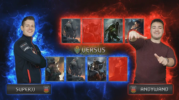 Во второй игре дня встретились Элиас "AndyWand" Караманис (Германия) и Ян "SuperJJ" Янссен (Германия). В первой партии мы увидели стандартные метовые колоды Эмгыра вар Эмрейса и Короля Брана. Затяжной третий раунд закончился победой AndyWand с небольшим преимуществом по очкам. Вторая партия (Брувер Гоог против Короля Брана) также закончилась победой AndyWand, на этот раз более убедительной. В третьей партии SuperJJ в очередной раз взял Короля Брана, его соперник играл за Дагона – последнего оставшегося лидера. AndyWand показал неубедительную игру и сдался на старте третьего раунда. В четвёртой партии (Дагон против Брувера Гоога) SuperJJ начал с паса первым ходом. Основные события развивались во втором раунде, где представитель compLexity Gaming обозначил своё преимущество, как тогда казалось. Однако в финальном раунде AndyWand имел гораздо более сильную руку. В итоге Элиас неудачно разыгрывает Доррегарая, что, возможно, и влияет на финальный исход – 43:44 и 2:2 по партиям. В последней пятой партии AndyWand играл за Дагона, а SuperJJ за Хенсельта. Это была зрелищная битва, которая, к сожалению, закончилась без интриги: SuperJJ получил заметное преимущество и уверенно его реализовал. Потрясающий камбэк! (2:3)