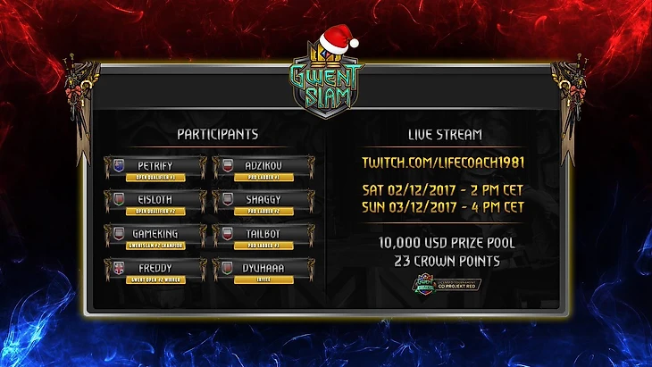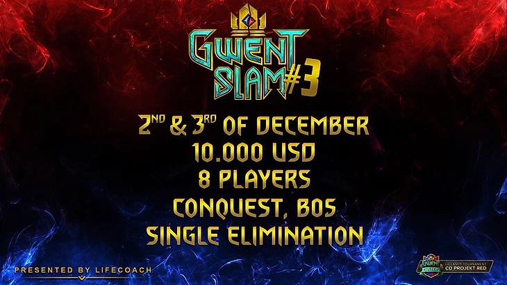 Практически сразу после завершения Gwent Slam #2 был анонсирован следующий турнир. Он пройдёт уже в декабре и это неспроста. Дело в том, что в конце ноября на этот раз должен пройти турнир серии Gwent Masters – Gwent Open #2. Формат проведения остался неизменен.