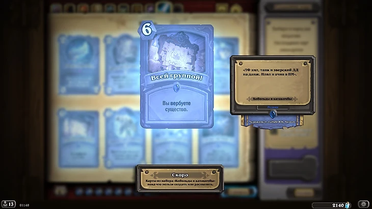 Релиз масштабного обновления «Кобольды и катакомбы в Hearthstone в Европе назначен уже на завтра, 8 декабря. А пока можете восхититься порцией анонсированных карт – которые уже отлично локализованы.
