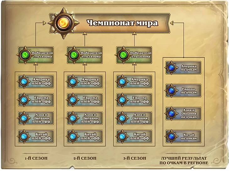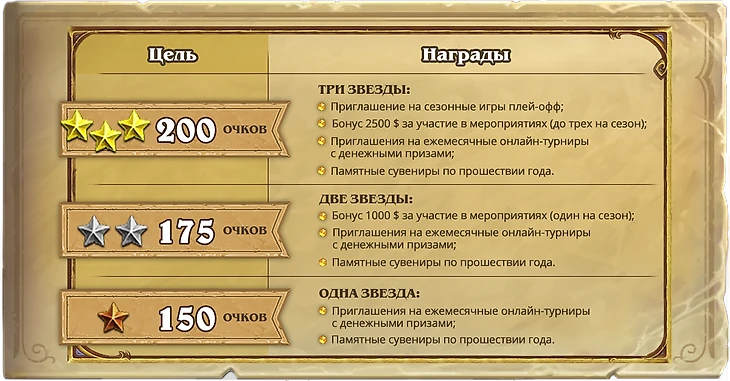 Уровень игрока зависит от суммы очков, набранных в течение трех предыдущих сезонов. Уровень определяется в заключительный день текущего сезона HCT (Hearthstone Champions Tour), так что награды будут действовать еще в течение 4 месяцев.