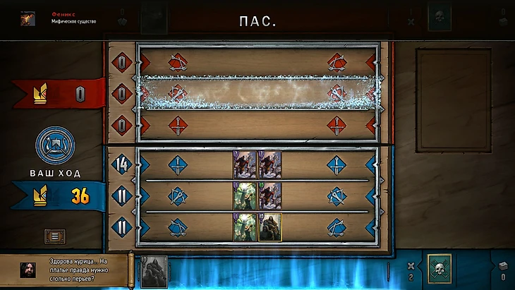 Ко второму испытанию Геральт и его команда наконец-то добираются до феникса. Бомба северный ветер (в случае с экспертным режимом – мороз) и натиск воинов Скеллиге делают свое дело (к слову, теперь юнитов можно скидывать в сброс прямо из руки). Джанго Фретт готов пленить огнедышащую птицу, но тут случается непредвиденное...