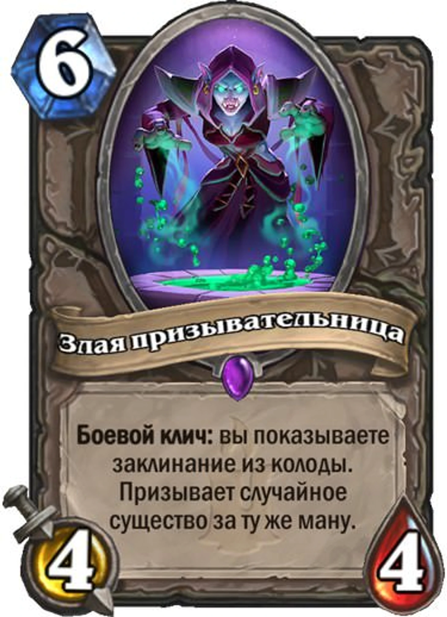 Например, чтобы сделать «Эдвина ван Клиффа» 10/10, нужно провернуть комбинацию, чтобы у Разбойника все существа стали 5/5, нужно выполнить квест. С картой «Злая Призывательница» все значительно проще – ее просто нужно получить в руку. На шестой ход вы переворачиваете игру, заполучив сильное существо. При этом данная карта не легендарная, поэтому часто «Злую призывательницу» можно увидеть на 6-й, а затем и на 7-й ход. Такие существа в корне ломают баланс игры, потому что дают игроку нечестное преимущество без траты ресурсов.