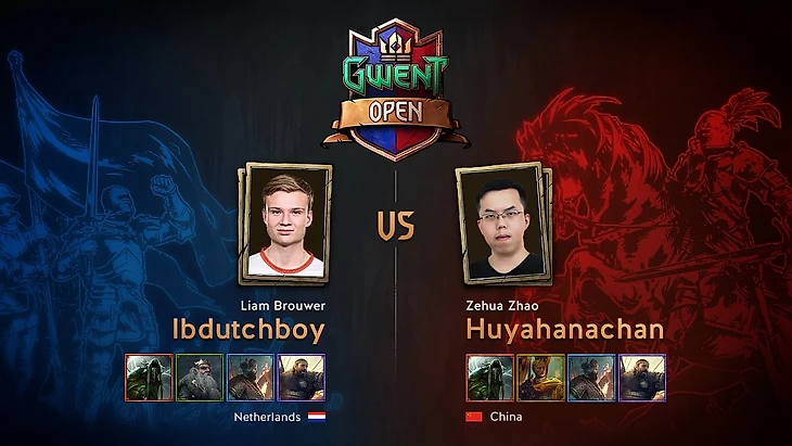 Во второй партии лидерами стали Брувер Гоог и Дагон. Долгий первый раунд остается за Huyahanachan, lbdutchboy не удается навязать ему борьбу. Тем не менее он ввязывает соперника в игру во втором раунде, сбросив на муллигане танцора клинка. Это не приносит ему большой пользы, кроме того он теряет Цири: Нову. В третьем раунде победу lbdutchboy приносит Эйвар Хаттори, сыгравший в итоге на 24 очка. (1:1)