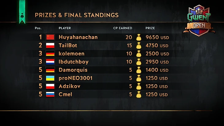 Таким образом, Цзехуа «Huyahanachan» Чжао из Китая становится победителем Gwent Open #4! Сыграв непростые поединки против двух новичков, Huyahanachan одержал не самую трудную победу в финале турнира. Ключевым фактором здесь стала его собранность и стабильное выступление. Таков наш победитель из Китая. Слава ему!