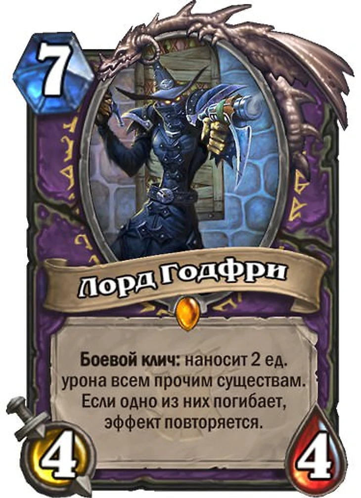 Kripparrian: «Раньше для того, чтобы активировать «Осквернение», надо было играть карту стоимостью хотя бы две маны – тогда такая зачистка стоила 4 маны. И даже этот ремувал не имеет такого сильного эффекта, какой дает «Лорд Годфри». К тому же ты еще получишь существо 4-4».