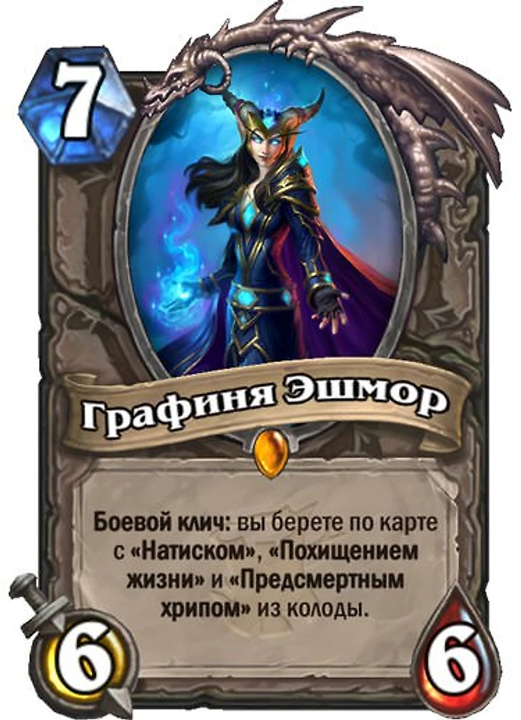 Bmkibler: «Из-за того, что «Графиня Эшмор» добирает именно карты, а не существа, это очень хорошо. Можно достать оружие с предсмертным хрипом, например.