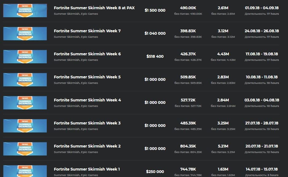 Fortnite Summer Skirmish доказал, что в Европе и Америке у игры просто огромная аудитория фанатов. Кроме того, круто выступить на турнире с таким свободным форматом при должном усердии и подготовке может любой – в десятку сильнейших на неделе постоянно входили разные игроки. Неплохая мотивация попробовать себя на профессиональной сцене, не правда ли?