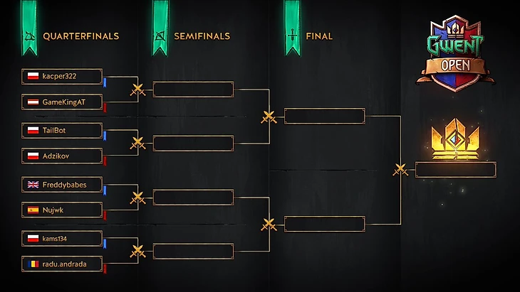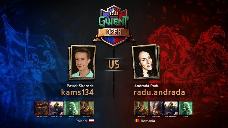 Последняя пара 1/4 финала состоит из наиболее неопытных участников турнира – Павел "kams134" Скорода (Польша) противостоит Андраде "radu.andrada" Раду (Румыния), являющаяся первой девушкой на турнирах по Гвинту.