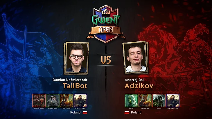 В переигровке TailBot вновь побеждает в первом раунде, но на этот раз его давление во втором раунде происходит на фоне уже более массивной армии в руке Adzikov. На этот раз TailBot пасует сам, а Adzikov тратит лишнюю карту, разыграв адреналин на мощного волколака. В итоге TailBot все-таки побеждает. (1:0)