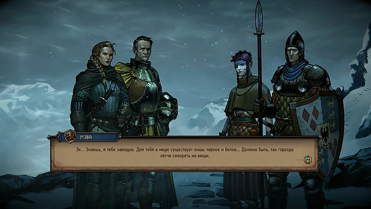 Более того, в Кровной Вражде, пожалуй, самые тяжелые выборы, если сравнивать ее с трилогией игр про ведьмака. Отыгрывая Геральта, вы могли делать что пожелаете, в конце концов, вы просто «богопротивный мутант», от которого жители Севера ничего не ждут. Играя за королеву Мэву, на ваше мнение (как коронованного лица) накладываются также интересы армии, территория, на которой происходит действо, а также сам выбор, зачастую имеющий довольно шаткое положение. Будете ли вы наказывать солдат за провинность на чужой земле? Простите ли предательство (которых в игре немало)? «Кровная Вражда» задает много вопросов и часто ставит Мэву в сложные ситуации. Вы не сможете пройти ее идеально, даже если будете выбирать наиболее гуманные варианты ответов. Нет, они, разумеется, предпочтительнее, но где-то вас обманут, где-то упадет боевой дух вашей армии, а где-то вы просто потеряете сотоварищей по отряду, имеющих иное мнение.