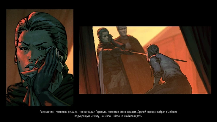 Изометрический вид, будем честны, пугает – в 2018 году нам хочется видеть красивую графику даже не в самых замороченных играх. Попытка сделать визуал простым осознана – «Кровная Вражда» все-таки является расширенной кампанией Гвинта, а сделать параллельно с Cyberpunk 2077 еще один AAA-проект было невозможно. Вместе с тем, упростив и стилизовав игру под нужный вид, CDPR совершенно не тронула сюжет – отсюда вытекает точно такое же полное погружение в мир Ведьмака, как это происходит в книгах и играх. Нужное додумывается, но многое показано и так. Элементы новеллы и комиксные вставки между главами достигают не меньший, чем поставленные ролики, эффект.