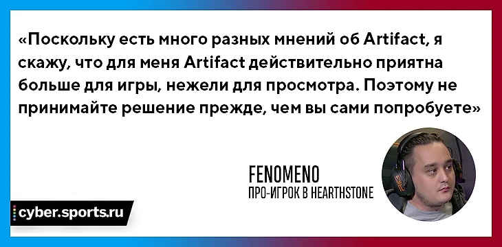 На первый взгляд, Artifact кажется более скилловым, чем Hearthstone, потому что игроки принимают больше решений по ходу игры и партия длится дольше. И, что самое главное, за ошибки эта игра реально наказывает. В Hearthstone же существует проблема в самой мете – поначалу скилл после обновления серьезно решает, но потом матчапы становятся более понятными и влияние умения делать выбор снижается. Пока что у Artifact нет сформированной меты, поэтому рано говорить, что игра лояльна к профессионалам. Но уже сейчас видно, что сложность Artifact играет на руку киберспортсменам. Тут можно выигрывать даже с сумасшедшими комбинациями карт, если, конечно же, у вас есть голова на плечах.