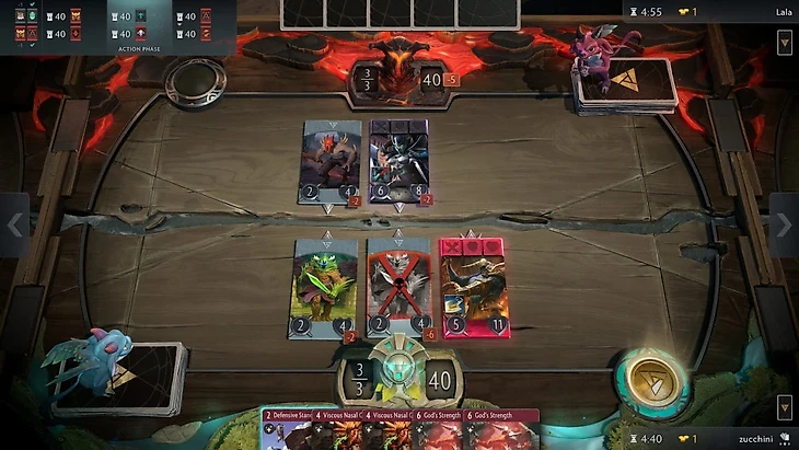 Разумеется, Artifact — это не новые шахматы и случайности тут присутствуют. Например, герои в первом раунде распределяются случайным образом, а крипы и во всех последующих раундах выставляются рандомно. В лавке товары предлагаются случайно, да и те же направления ударов — тоже только с 50% вероятностью будут бить вперед.