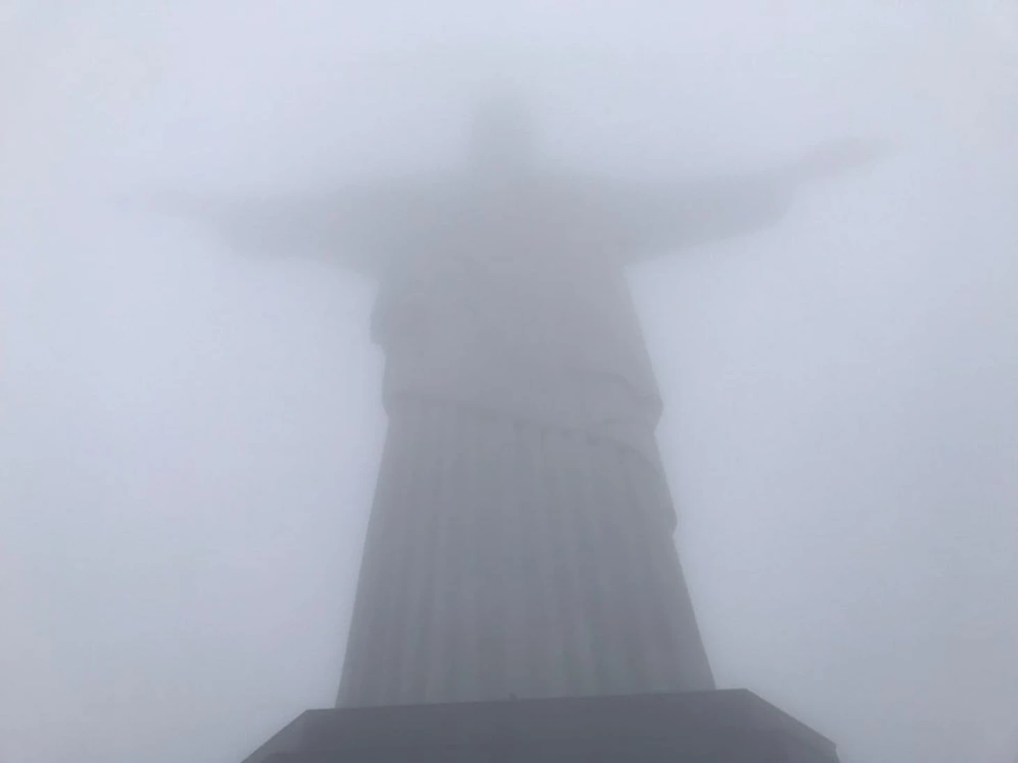 Чем выше, тем яснее понимаешь, что водитель был прав: туман такой плотный, что ложится на кожу каплями. Через пятнадцать минут подъема перестаешь видеть дальше вытянутой руки. Текстуры не прогрузились – никакого вида на Рио, сплошное белое ничто.Статуя Христа-Искупителя