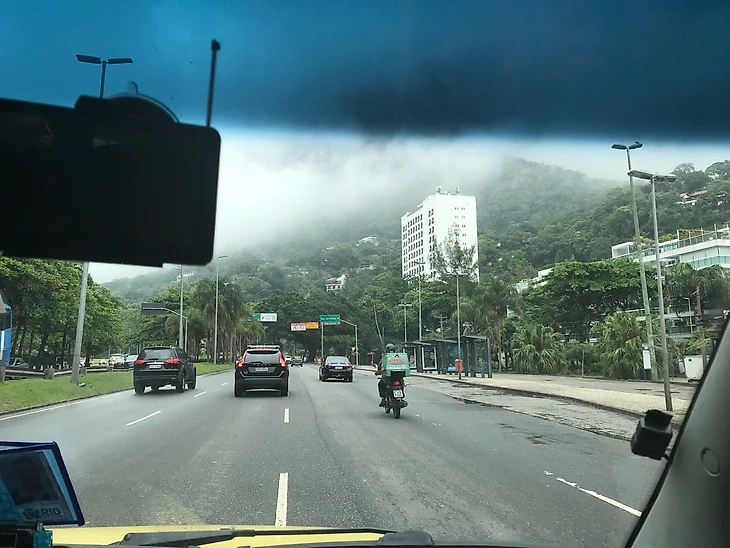 Таксист скачет с полосы на полосу, машины опасно жмутся друг к другу. Иногда между рядов проезжают мотоциклы, громко пибикая, чтобы их не сбили. Движение в Рио не аккуратное, все подрезают всех, но при этом никто не ругается – видимо, здесь такое в порядке вещей.