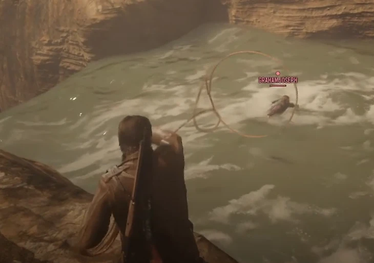 Парень спас падающего в водопад игрока в Red Dead Online. Красавчик!