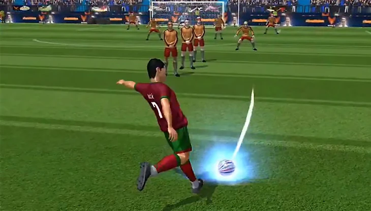 По сути, она абсолютна идентична знаменитой Flick To Shoot (проведи, чтобы ударить): есть вратарь, несколько полевых игроков и сам Роналду, который бьет по воротам так, как вы проведете по экрану. Вы можете бить напрямую или крученым ударом. И, естественно, использовать кучу внутриигровых плюшек.