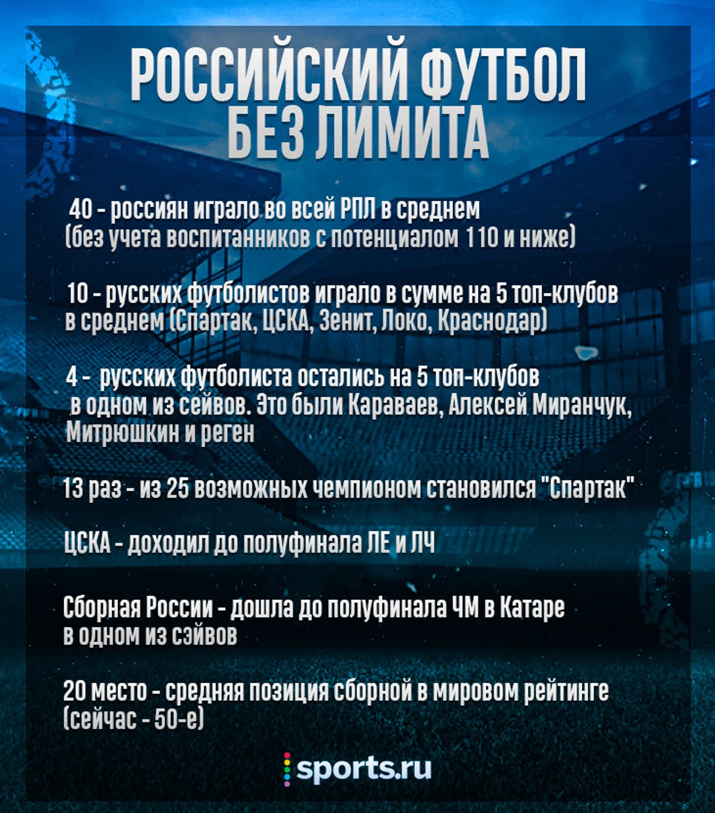 Лимиту на легионеров у нас уже больше 13 лет, и даже Виталий Мутко больше не связан с российским футболом. О лимите все так же много говорят, и почти всегда – негативно: Газзаев, Семак, Березуцкий (это совсем свежие примеры). Мы решили проверить, каким был бы российский футбол без лимита – и просимулировали 5 следующих сезонов без лимита через 5 разных сэйвов в Football Manager.