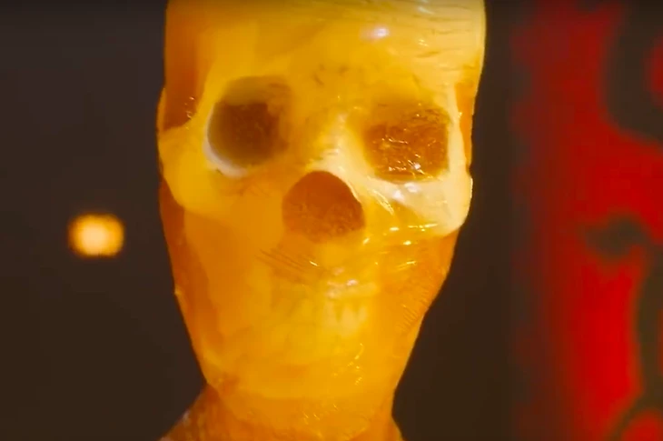 Из соображений гуманности авторы решили заменить настоящую голову добровольца на модель черепа, покрытую желатином – прямо как в оригинальных «Разрушителях мифов».