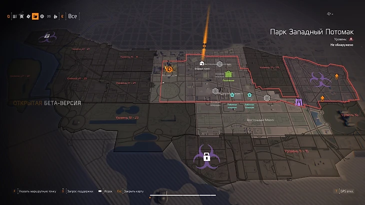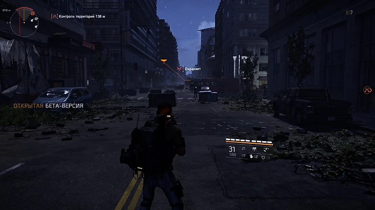 В бете деятельность игрока ограничена всего тремя районами и одной «Темной зоной» (это местный эндгейм-контент), но их самих в игре гораздо больше. Каждая область при этом разделена на уровни. Я попробовал сунуться на локацию с грейдом постарше, и первый же встреченный там босс отправил меня в нокаут буквально за пару очередей, поэтому разделение тут не просто для галочки.