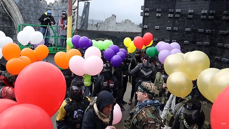 Индикатором жизней участника были воздушные шарики, приклепленные к шлемам. Если все три шарика лопнули – ты умер, механики возрождений организатор не предусмотрел.