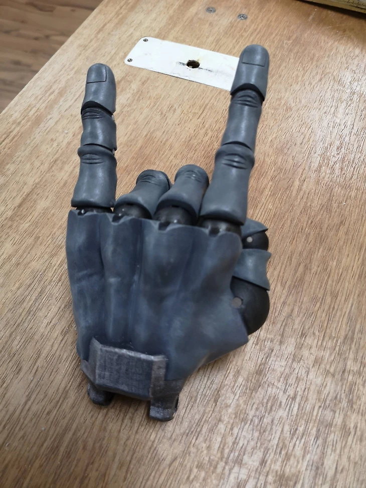 По словам автора, фaлaнги пальцeв и киcть отпечaтaны нa 3D-принтeрe, a кocть в пpедплечье сделана из дepeвa — все мелкие детали подвижны.